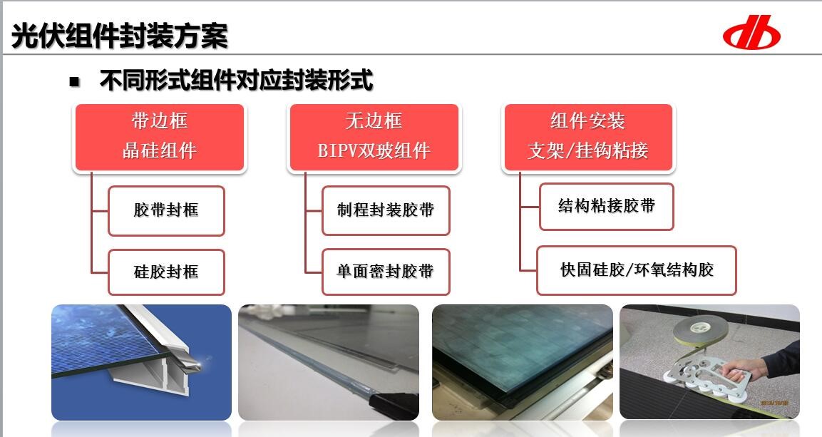 德邦科技在太陽能領(lǐng)域,為客戶提供創(chuàng)新產(chǎn)品開發(fā)和設(shè)計(jì),德邦膠粘劑為光伏硅片切割提供了完美解決方案;德邦膠帶用于光伏組件封裝及安裝,符合環(huán)保和安全要求,性能優(yōu)異,能大幅提高生產(chǎn)效率及產(chǎn)品良率。公司與眾多知名光伏企業(yè)保持長期戰(zhàn)略合作,承擔(dān)了國際標(biāo)準(zhǔn)SEMI PV61-0115《光伏組件用封框膠帶》及CQC3319-2015《地面用光伏組件密封材料膠帶技術(shù)規(guī)范》編制及起草,被譽(yù)“光伏封裝材料的領(lǐng)跑者”。